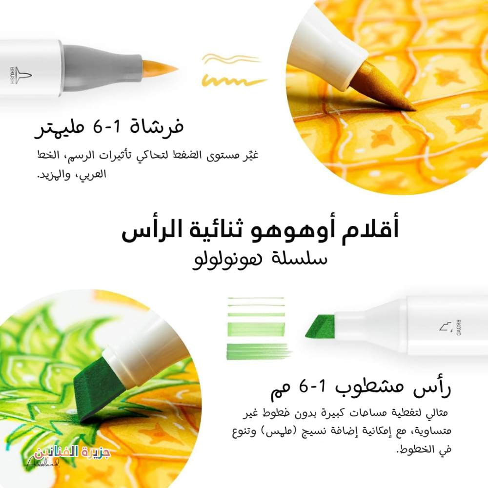 ارتقِ بإبداعك إلى مستوى جديد مع أكبر مجموعة من ماركرات Ohuhu Honolulu — 216 لونًا زاهيًا تغطّي كامل طيف الألوان، وتشمل قلم دمج عديم اللون لدمج سلس واحترافي.