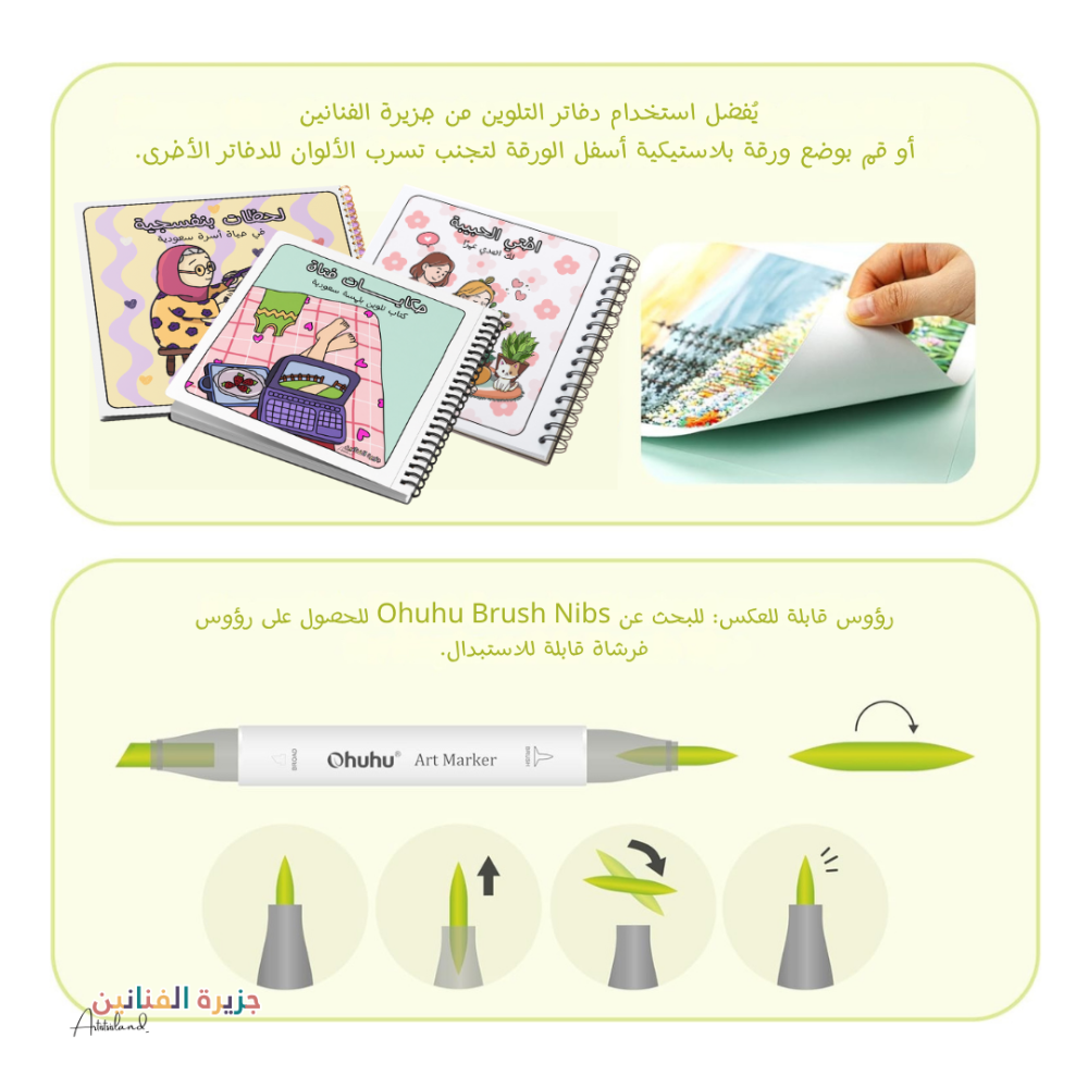 وسّع آفاقك الفنية مع تصميم القلم المزدوج! اختر رأس الفرشاة لعمل ضربات واسعة وأنيقة، أو استخدم الرأس الدقيق لتلوين المساحات الصغيرة و التفاصيل الدقيقة .